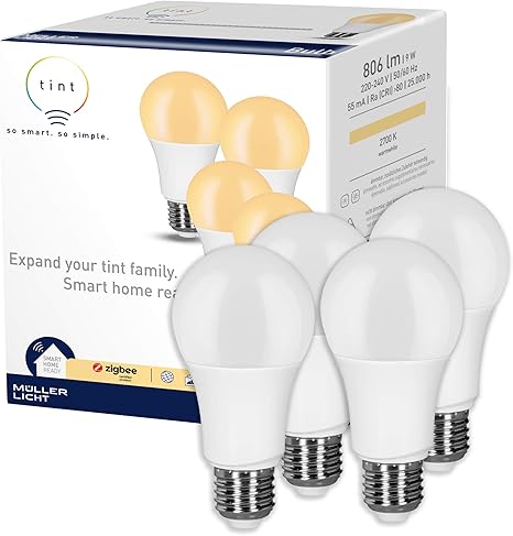 Tint By Muller Licht Smart Led Bulb E27 Bulb Shape Warm White Dimmable 9 W Replaces 60 W Lamp Zigbee Works With Alexa Amazon De Beleuchtung